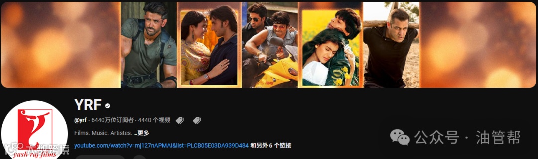- 印度宝莱坞推荐频道:YRF (Yash Raj Films)(含预告与歌舞片段)