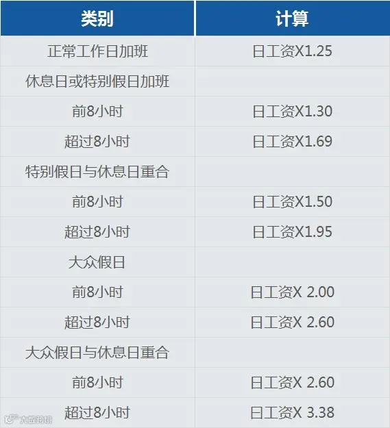 雇员每天工作不超过8小时或每周不超过48小时,并有权在连续工作6天后享受连续24小时休息。加班需支付至少25%的附加工资。在休息日工作的员工可能享有更高的工资率。