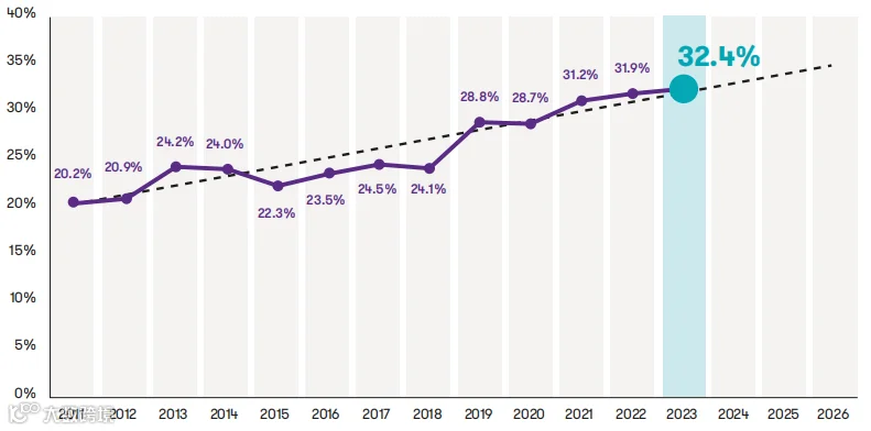 3月8日,会计师事务所致同发布《2023商业女性调查报告》显示,在全球中端市场企业中,有32.4%的高管职务由女性担任。照此趋势,到2025年,全球中端市场预计仅有34%的高管职务由女性担任。