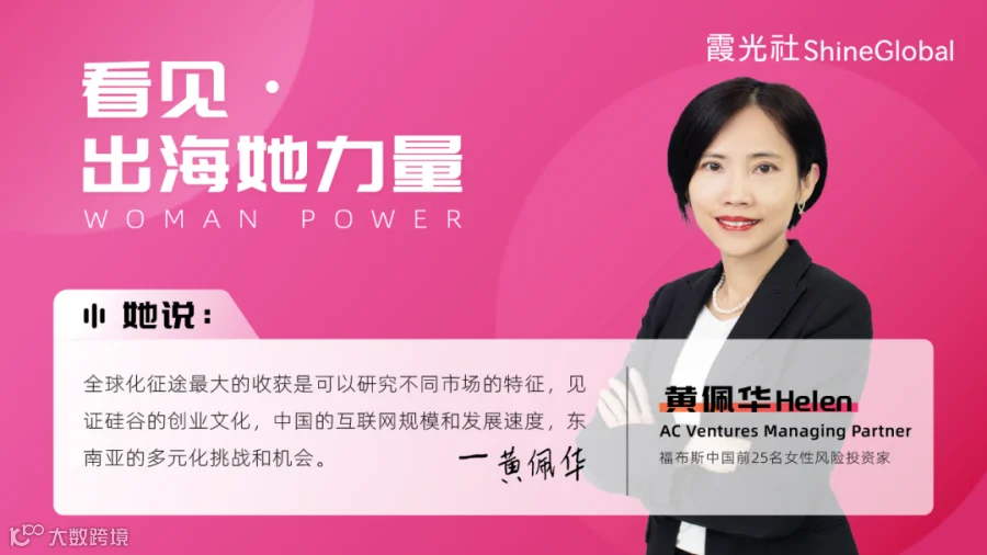 入选“福布斯中国前25名女性风险投资家”的Helen Wong(黄佩华),是AC Ventures管理合伙人。霞光社获悉,AC Ventures是东南亚顶级风险投资公司,投资于专注于印度尼西亚和东盟的早期创业公司,管理资产超过5亿美元。在AC Ventures,50%的高管职位由女性担任。