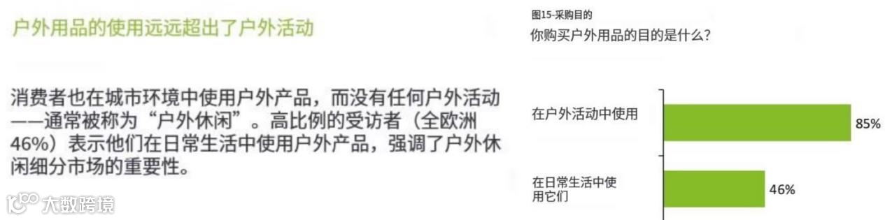 IPSO和Deloitte的《2021年户外消费者报告》也显示,近一半(46%)欧洲受访者表示他们在日常生活中使用户外产品。欧美地区消费者对户外服饰的需求已经超过了户外活动本身,成为一种时尚和生活方式的体现。