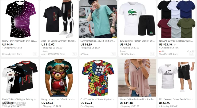 即使是印花T恤,先不论设计审美,很多也只卖到了5-7美元(含运费)。