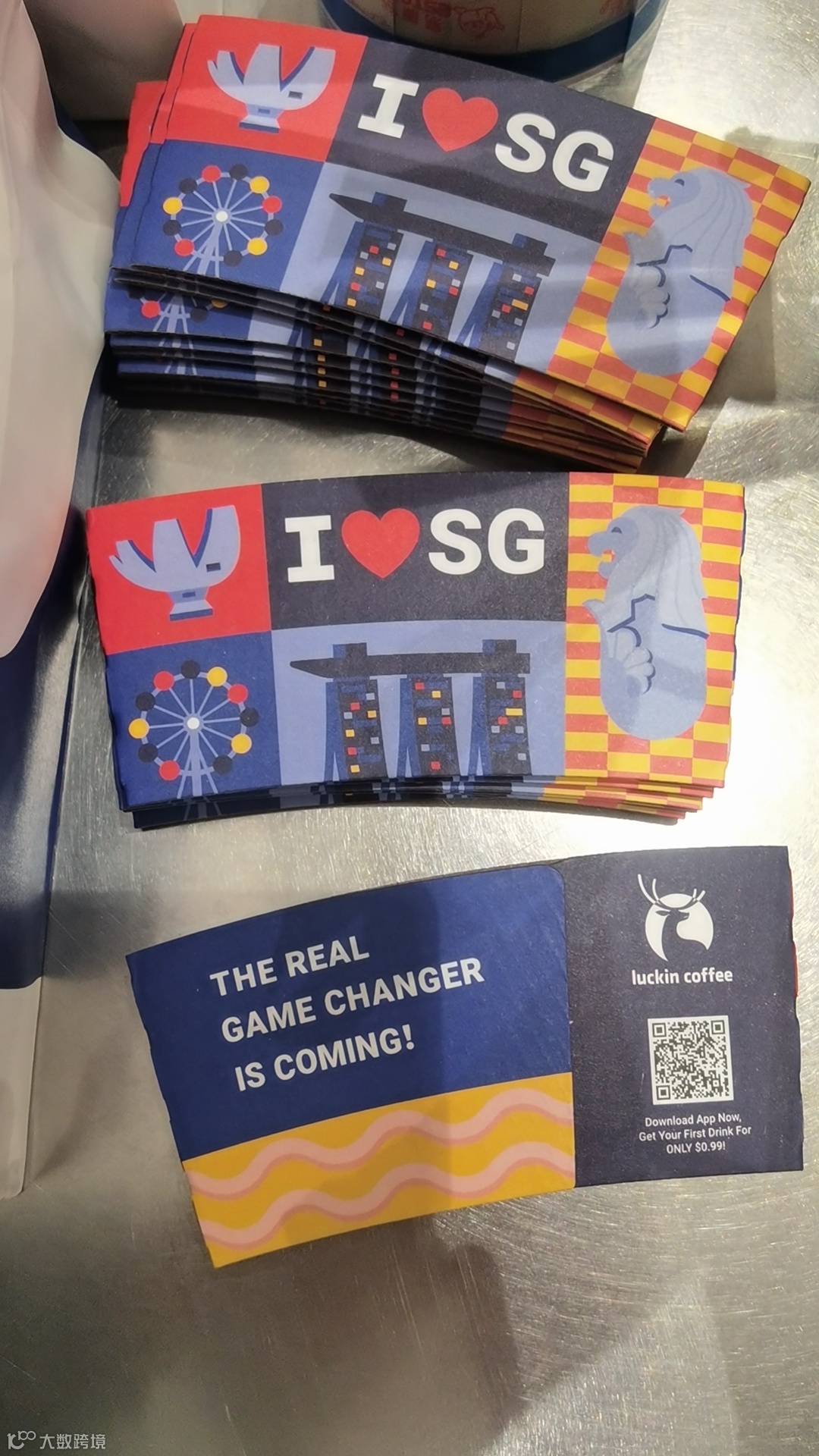 瑞幸滨海广场门店。图源:采访对象供图正式开业当天,瑞幸也推出优惠策略:新用户下载瑞幸APP并注册可以用0.99新币(1新币约合5.17元人民币)的价格购买第一杯饮品;并且附赠一张5折券。瑞幸也专门定制了新加坡专属杯套,上面写着“The real game changer is coming!”展现出瑞幸要在新加坡重塑咖啡市场格局的决心。