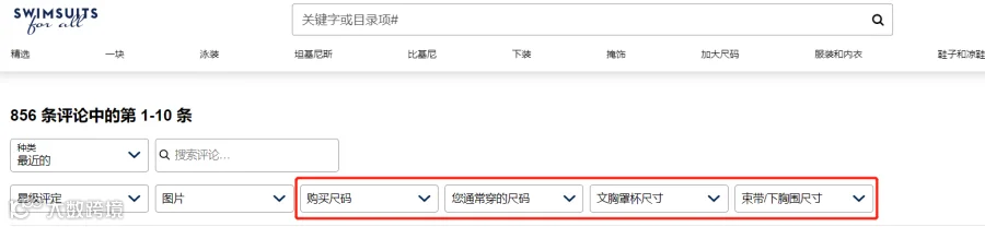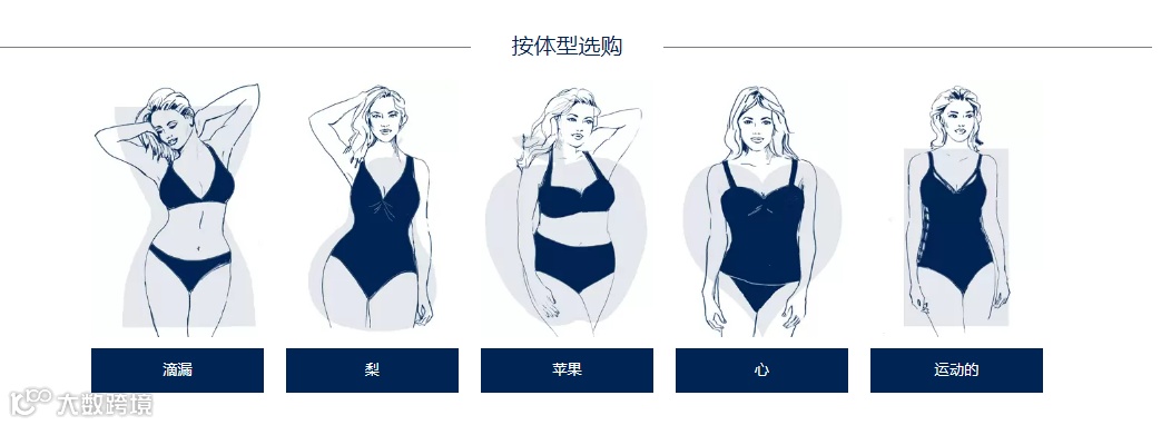 就像我们前面提到过的那样,相比时尚,Swimsuits for All的顾客更看重产品是否舒适以及合身,尺码是Swimsuits for All官网最重视的问题,不仅把大码女性们的身材做了“沙漏型、梨形、苹果型、心型、运动型”的区分,在商品详情页中也可以根据消费者的各项身体维度数据做出推荐。