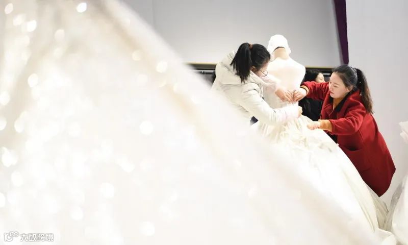 安徽省丁集镇是中国有名的“婚纱小镇”,从年初至2月下旬,这里已经发出婚纱礼服超过40万件,约600家企业都在抢订单、赶工期。