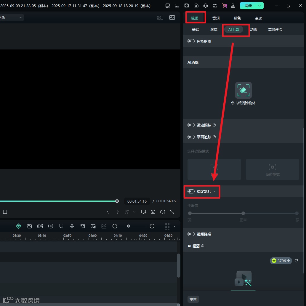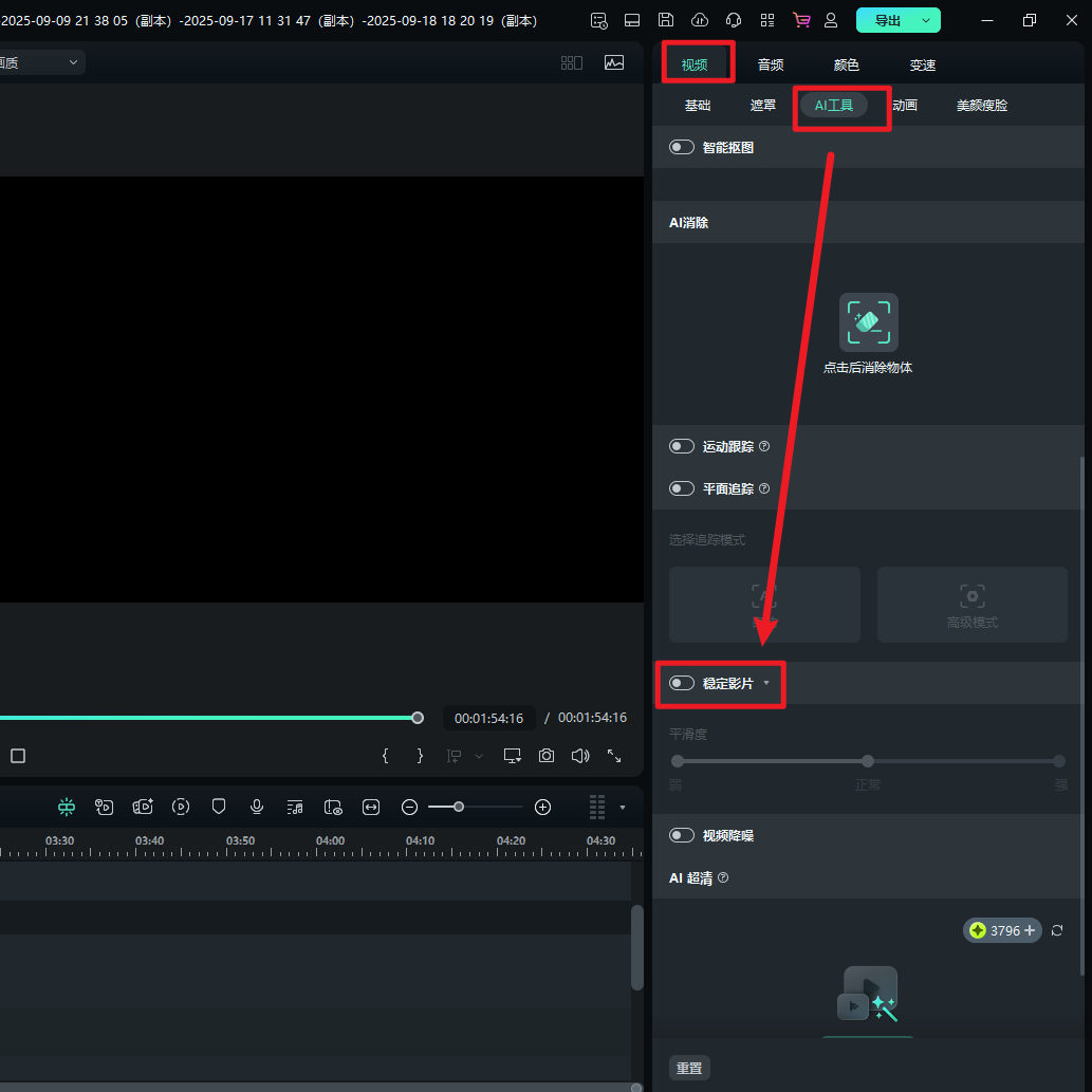 如果你还没换新机,也不用眼馋,万兴喵影的【稳定影片】功能,同样是为手残党准备的后期防抖神器。