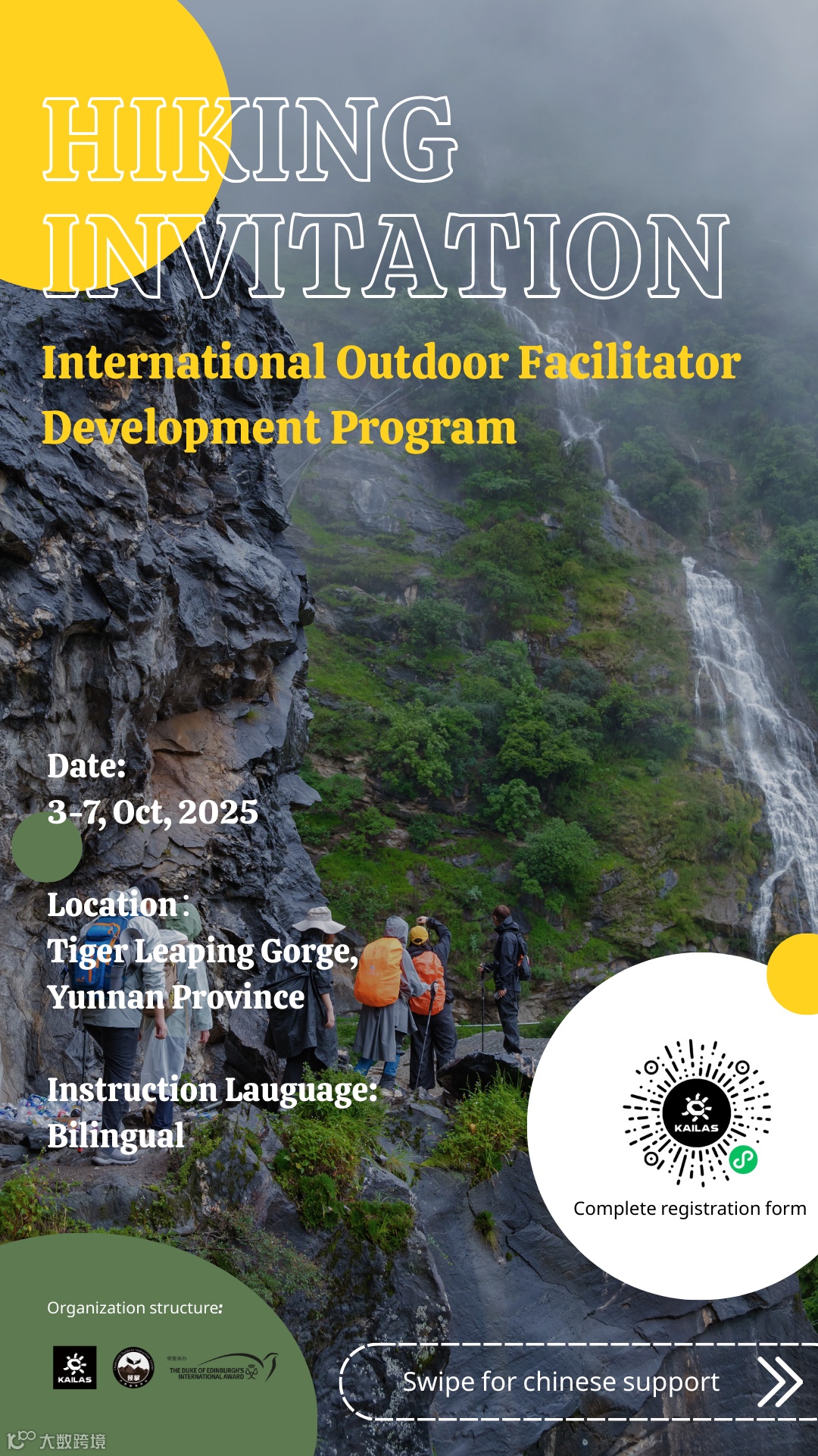 Leadclimb、爱奖计划(DofE)与凯乐石(KAILAS)联合支持,提供徒步旅程、认证体系与装备赞助。