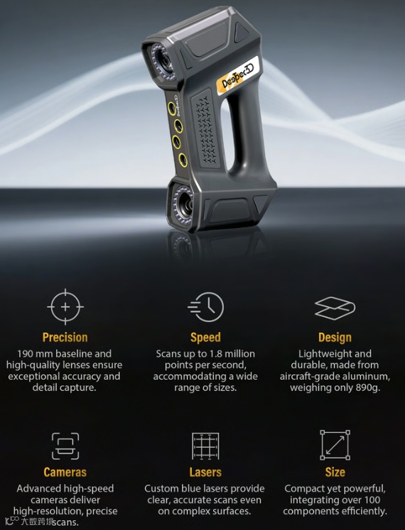 高精度规格:声称达到±0.02mm(±20μm)的扫描精度
