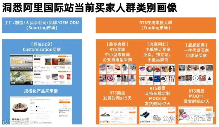 所有的流量经过汇总分析之后,阿里巴巴会根据流量的特性打上标签,商家最熟悉的OEM和RTS双赛道,就是根据流量的特性去做划分的。随着贸易格局的变化,阿里根据RTS标签的客户群体的新需求,又划分了RTS小单快定,DDP,一件代发等新的小赛道。除了OEM和RTS这2个大标签外,阿里还对客户打了更多的标签,比如在数据参谋中买家分析,访客画像和直通车推广的人群标签,地域标签等。有效地定位自己市场群体的客户画像,才能提高转化的效率,这也是阿里巴巴数字化运营必须要掌握的能力。