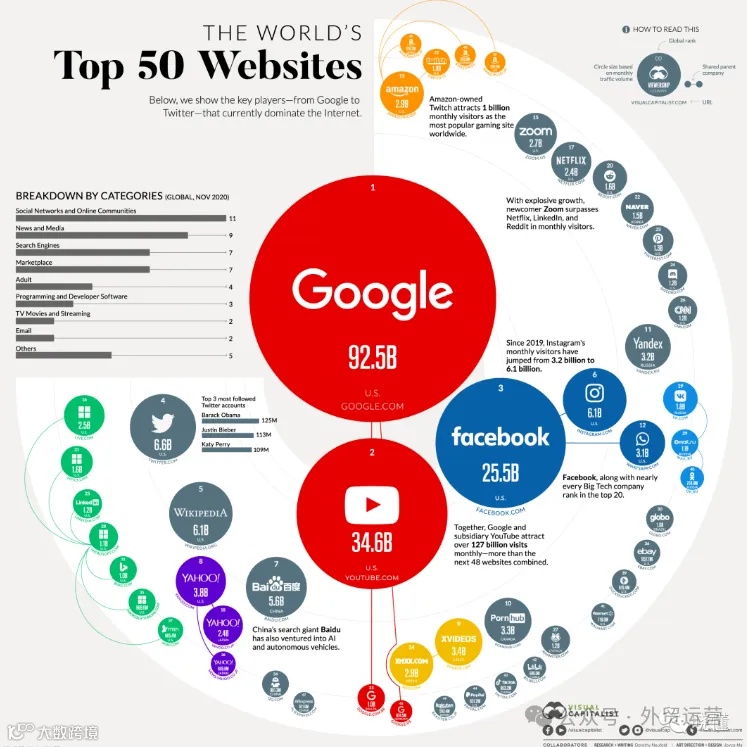 什么?阿里巴巴的流量也是从别处引流过来的么?我以为她是自带流量的呢。是的,最早阿里巴巴的流量也是通过下面更大的鱼塘——全球互联网媒体中,通过付费推广,收购控股的网媒投放推广等方式不断吸引客户和商家。随着客户、商家的不断积累,和平台又形成了稳定的贸易生态,因此,他现在又自带流量。?