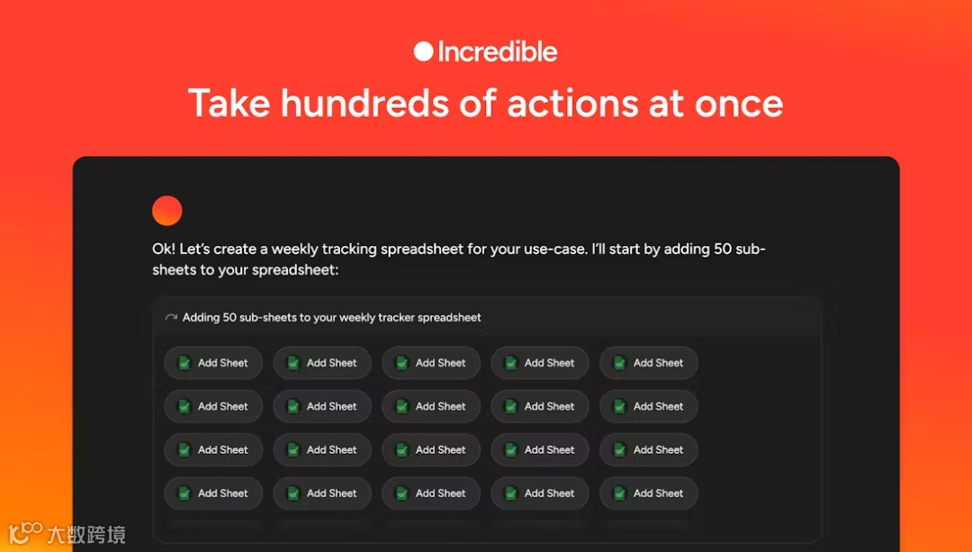 简介:Incredible是一款由瑞典团队打造的高效能Agentic AI平台,特点是支持一次性执行1000多个动作,能够处理大型数据集,且集成超过100个应用连接器,实现跨平台和多场景的智能自动化。