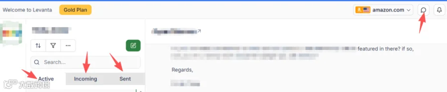 2、Creator-Active这个界面的右上角铃铛旁边的这个消息符合,点进去就到消息展示页面,这里的Active记录着双向互动的消息,Incoming记录着联盟客给你发的消息,Sent记录你向联盟客发的消息。你发的消息得到回复后,Sent里的消息会自动归类到Active里去了,挺不错的。