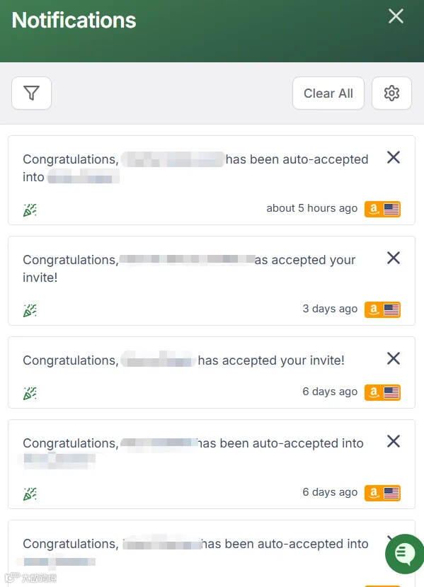 所以我们邀请联盟客的时候还是需要一个个去筛选,不然无脑点邀请的话,就算联盟客加入到我们的账号,质量也不可控。当然很多联盟客也是来者不拒,自动就通过了,摊手。