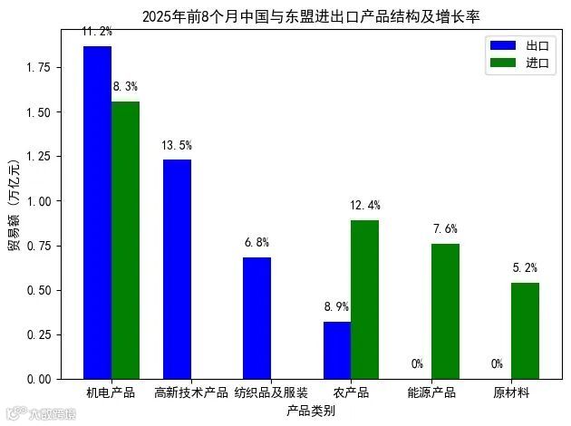 跨境电商、数字服务等新业态成为双边贸易新增长点。据商务部数据,2025年前8个月,中国与东盟跨境电商交易额达到0.38万亿元,同比增长23.6%,远高于整体贸易增速。