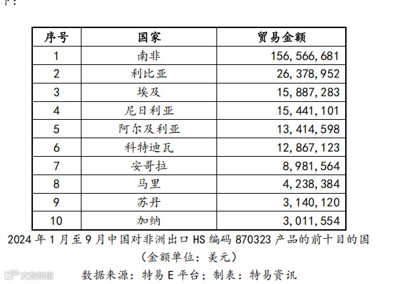 2024年1月至9月,中国对非洲二手车出口呈现结构性特征: