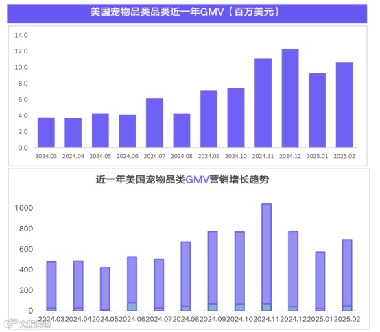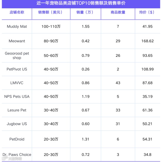 宠物类目店铺GMV Top10门槛仅为20万美元。高价产品表现活跃,售价高于50美元的商品占比达70%。