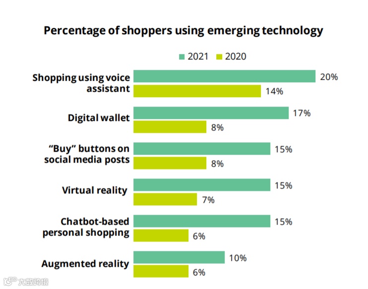 同时,商家提供的技术支持也越来越能够得到消费者的接受,特别是语音助手与电子钱包的功能,社媒平台上的一键购买也慢慢赢得消费者青睐,为电商卖家提供了社媒营销新思路。