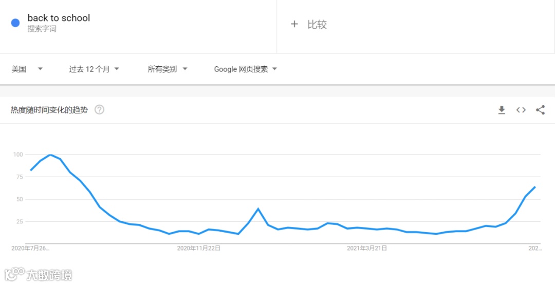 从Google Trends中可以看出,在去年的七、八月份返校季搜索量达到一年中的峰值,今年的搜索也从本月开始趋升。