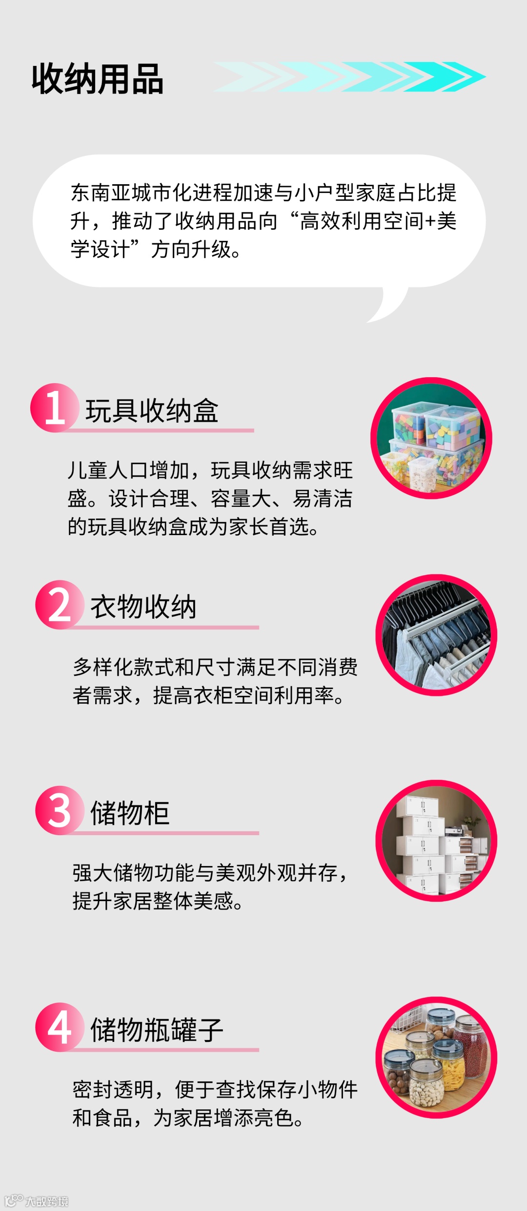 2025年,东南亚家居百货市场呈现精细化、品质化、场景化发展趋势。从收纳产品的功能升级,到厨房用品的审美迭代,再到防水类产品的创新应用,各细分领域均蕴含增长机会。