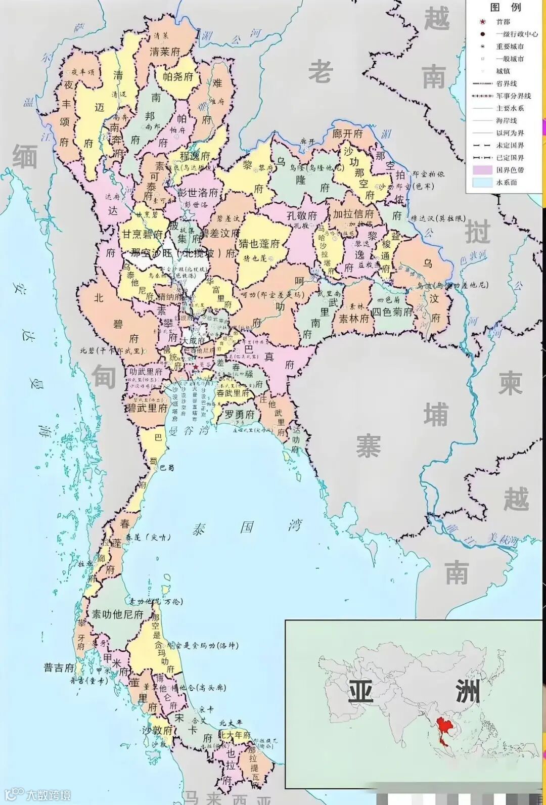 1、概述:泰王国位于亚洲东南部的中南半岛中心,北邻缅甸和老挝,东接老挝和柬埔寨,南临马来西亚,西濒安达曼海,东南滨临暹罗湾。泰国是东盟创始成员国之一,政体为君主立宪制,国王是国家元首。