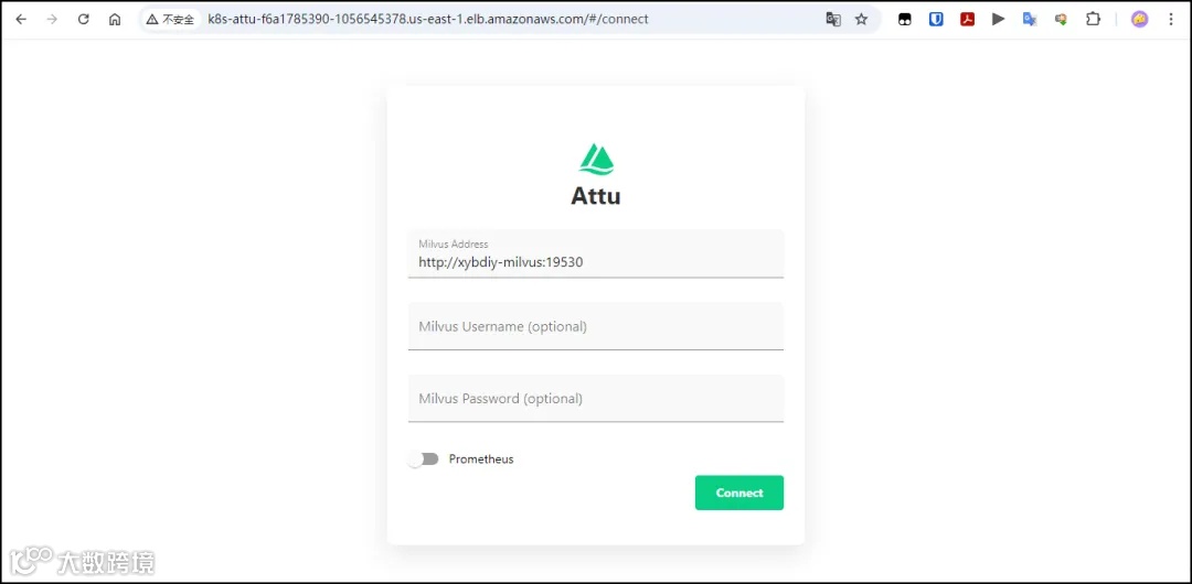 部署完成后,可通过负载均衡器公网IP或绑定域名访问http://<IP>:3000进入Attu界面。