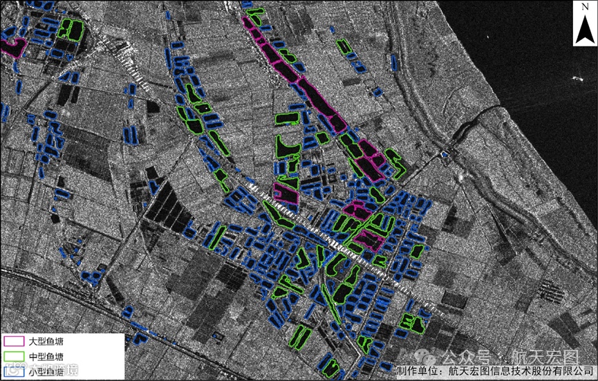 传统水产养殖依赖人工巡查,效率低、成本高。天权大模型结合SAR影像与水体语义过滤技术,可有效排除河流、湖泊、水田等干扰,精准识别规则化养殖池塘,实现自动化面积统计与规模分级。