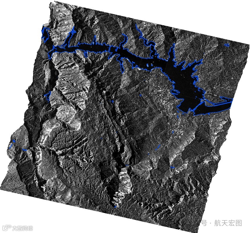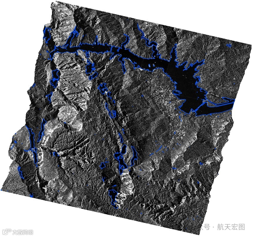 图1、天权大模型结合NDVI与DEM的SAR影像水体提取效果。