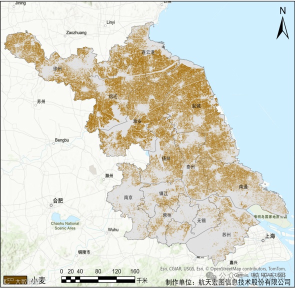 2025年,基于女娲星座SAR时序数据与江苏省三区县地面样本,构建冬小麦提取模型。对全省2024年小麦种植面积进行反演,结果为24941.00平方公里,与统计年鉴数据(24042.67 km²)相比,相对误差仅3.74%,具备高度业务可用性。
