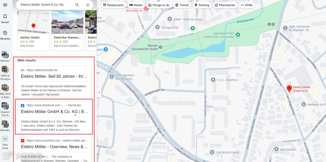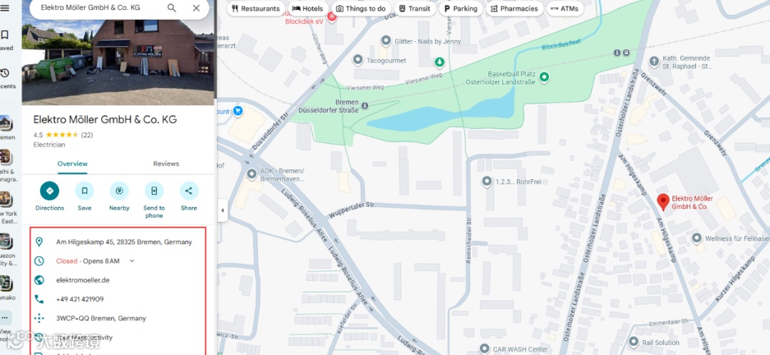 谷歌地图另一优势在于页面底部常关联客户社交媒体主页或其他外部链接,有助于拓展更多联系方式与背景信息。