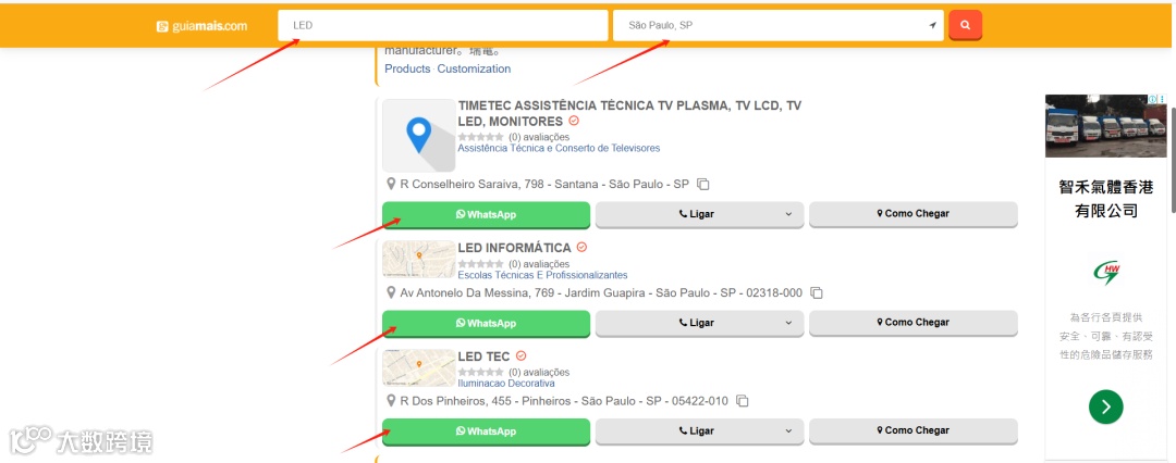 巴西功能强大的本地搜索引擎,支持按行业关键词、城市、邮编筛选企业信息,是开发巴西B端客户的重要渠道。