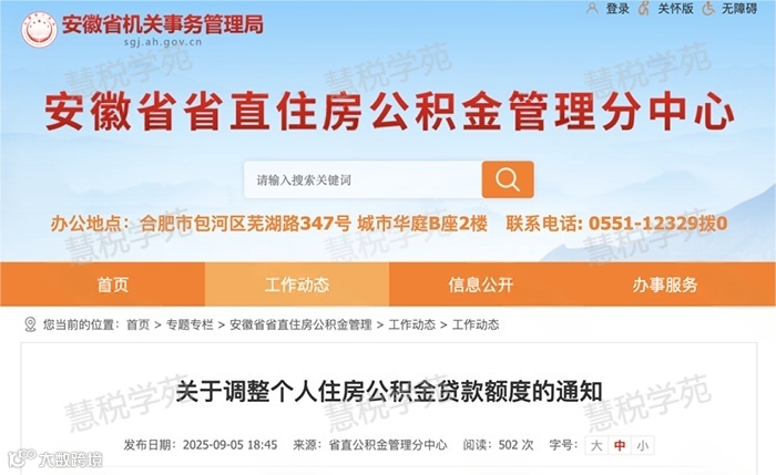 9月5日,安徽省省直住房公积金管理中心发布通知,调整个人住房公积金贷款额度,自2025年9月8日起施行,有效期5年。