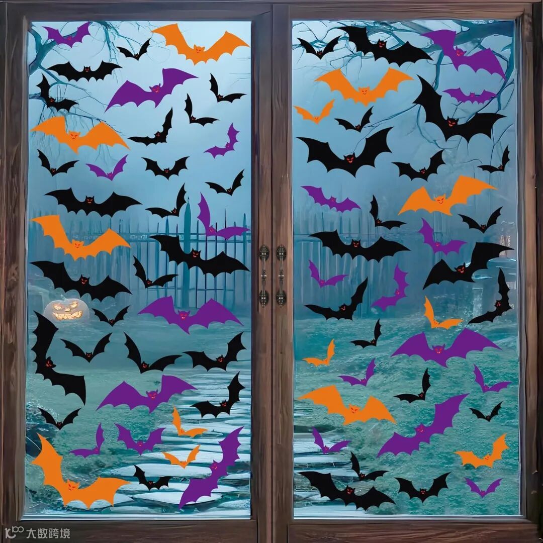 窗户贴纸建议选择平面夜光款,避免3D立体设计带来的侵权风险。印上群蝙蝠图案,夜间效果突出。此类产品需提前备货,建议9月中旬前完成入仓,以免因物流延误错失销售高峰。