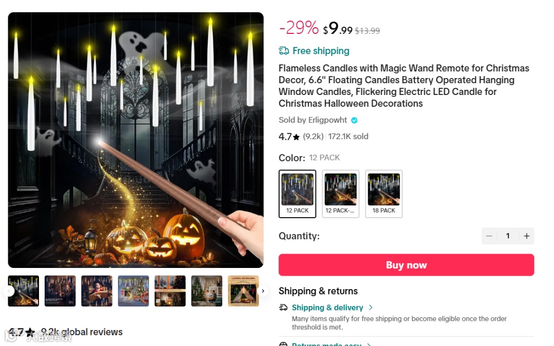 无焰蜡烛灯去年有卖家28天销售额近20万美元。采用蝙蝠造型底座,搭配LED变色功能,可大幅提升氛围感。注意电子类产品需通过FCC认证,避免合规风险。
