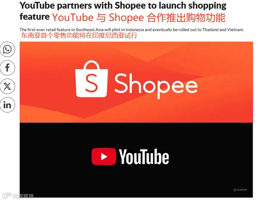 进入2025年,该合作模式扩展至新加坡。Shopee在越南、泰国推进联盟营销的同时,联合YouTube帮助本地卖家对接更广泛的创作者资源,提升品牌曝光与销售转化,进一步巩固其在东南亚市场的影响力。