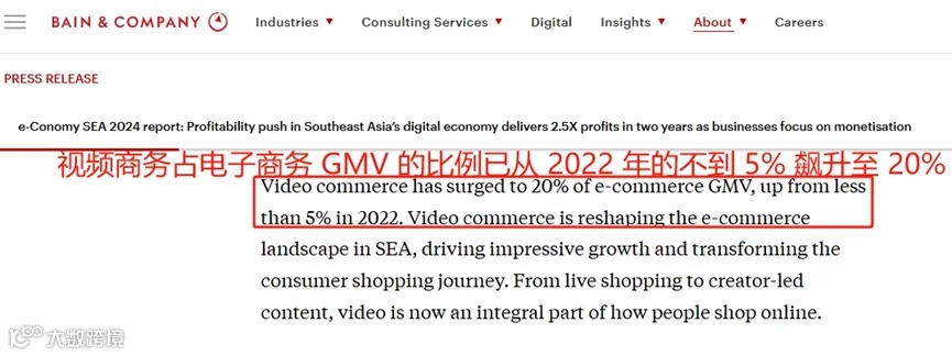 Shopee频繁联动社交媒体平台,反映出内容电商的巨大潜力。Statista数据显示,社交商务已成为全球增速最快的零售渠道之一。在东南亚市场,谷歌、淡马锡与贝恩联合报告指出,内容电商贡献日益显著,直播带货GMV占比从2022年的不足5%跃升至2025年的20%,增幅近四倍。