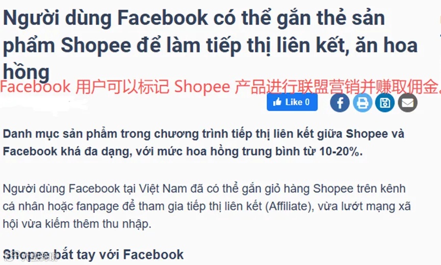 Shopee和Facebook推出联盟营销计划 图源:vietstock