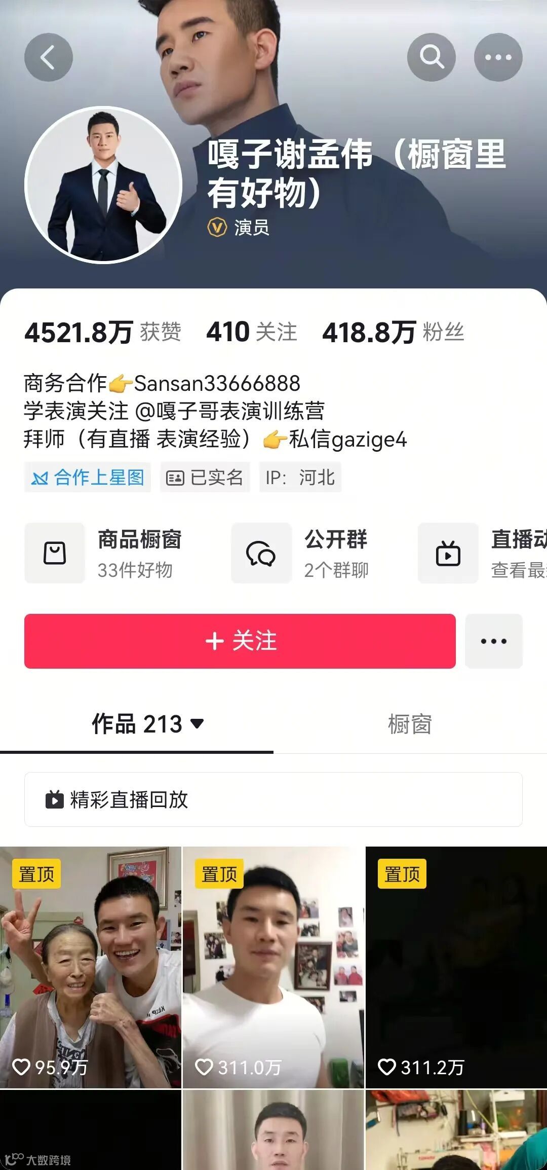 谢孟伟因2003年主演电视剧《小兵张嘎》成名,但成年后因角色固化,演艺事业受限,转而投身直播带货。