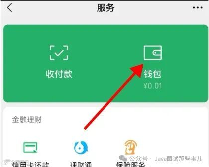 在“服务”页面中找到“钱包”入口并点击进入,该模块集中管理支付相关设置。