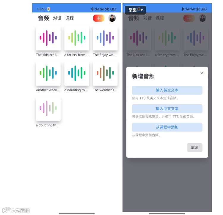 - 跟读训练:支持导入本地或在线音频,自动断句、录音,并与原声音高曲线对比分析。