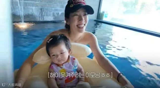 孙淡妃在其YouTube频道“담비손 DambiXon”上传题为《继翻身后,宝宝迎来首次辅食,快速成长中的海伊》的视频,记录了此次温馨的家庭出行。她透露,为了能让女儿安心游泳,特意准备了三种不同款式的游泳浮圈。