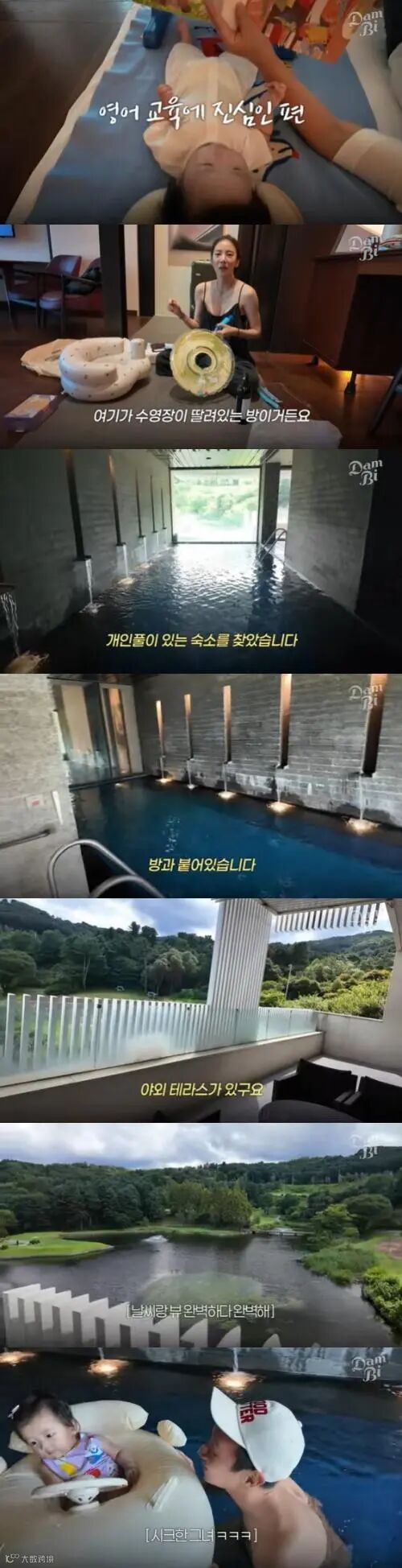 韩国艺人孙淡妃(손담비)与丈夫李奎赫(이규혁)近日为刚满5个月的女儿海伊安排了一场特别的家庭旅行,前往加平一处配备私人泳池的高端民宿度假。