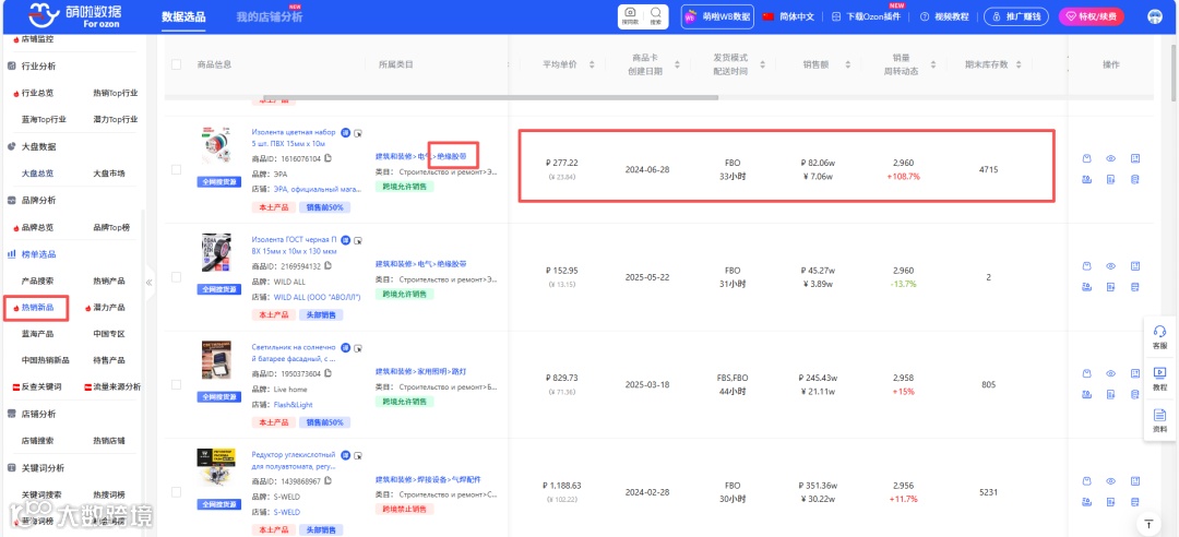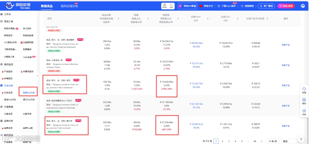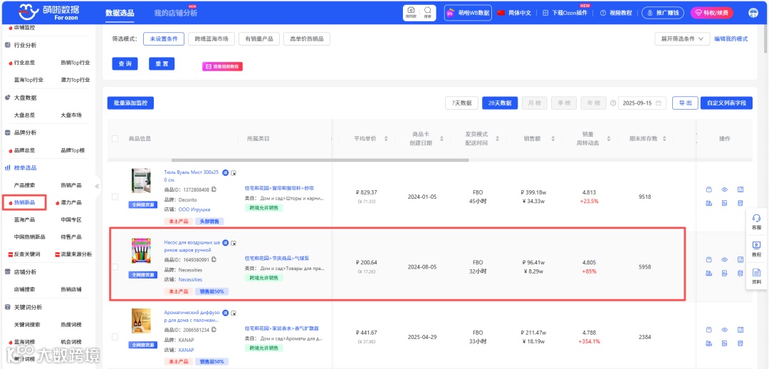 (萌啦Ozon数据:热销Top行业)