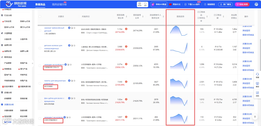 (萌啦Ozon数据:飙升词榜)
