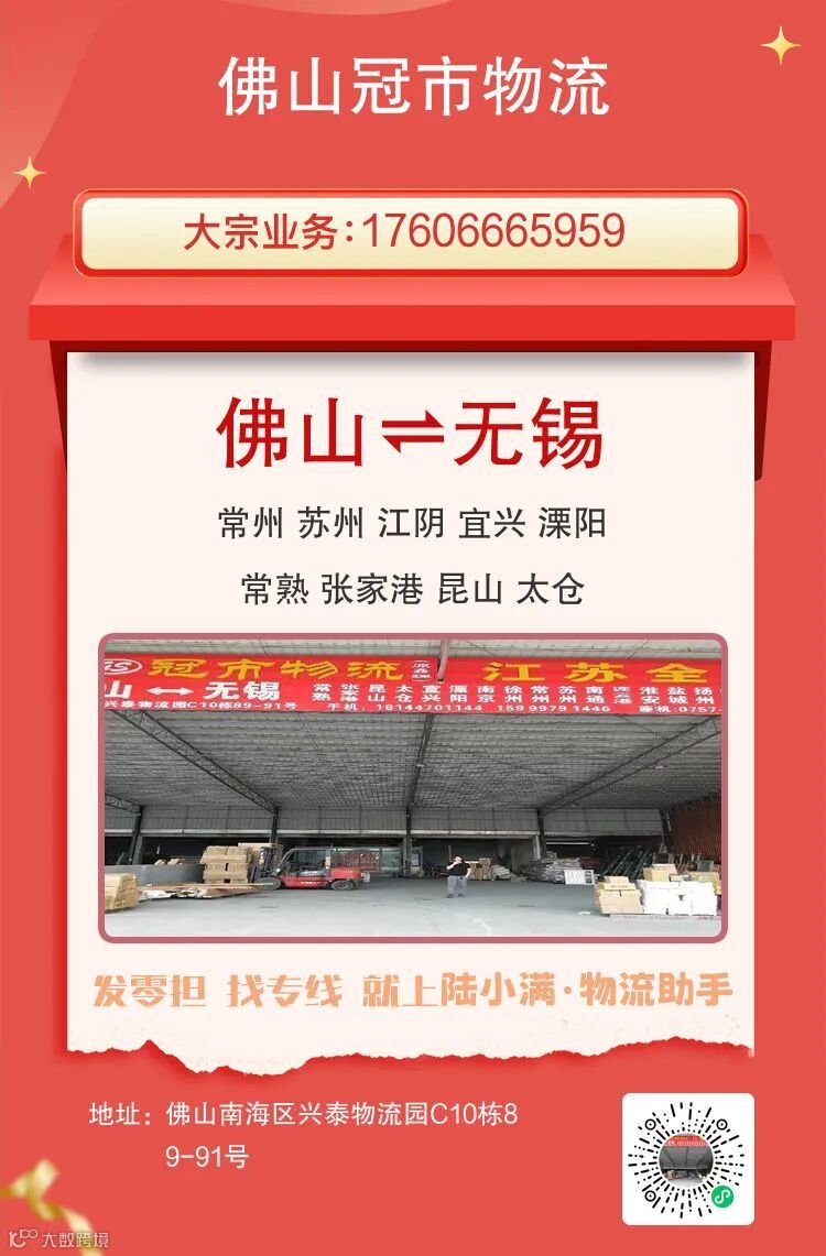 主营线路:佛山至无锡物流专线