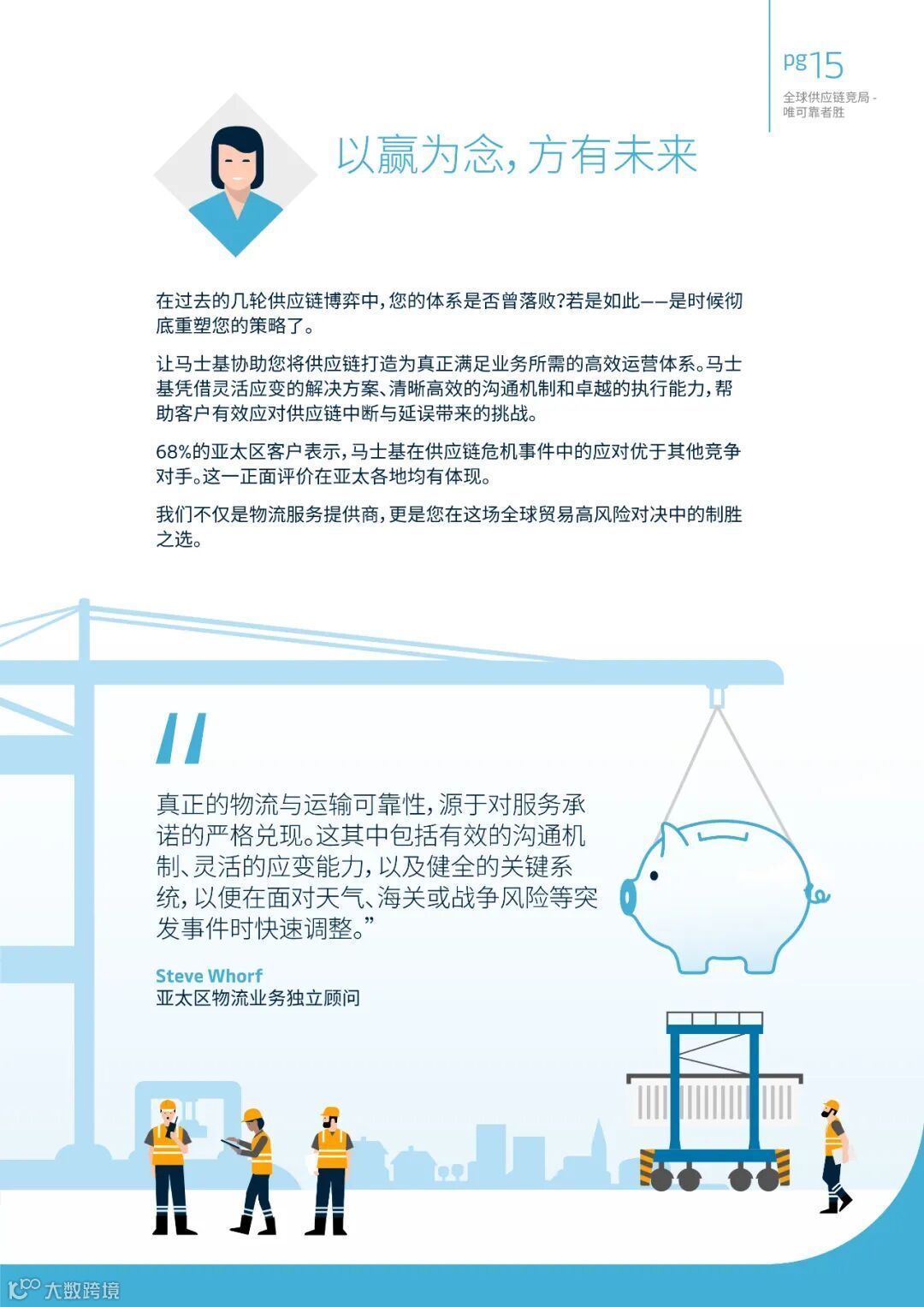 报告最后介绍了马士基提供的综合服务组合,涵盖综合供应链管理、领先型物流、项目物流、冷链物流以及全球贸易与海关合规咨询服务。这些能力旨在帮助企业提升供应链的可靠性、适应性与整体韧性,成为其在全球复杂环境中稳健发展的可靠伙伴。