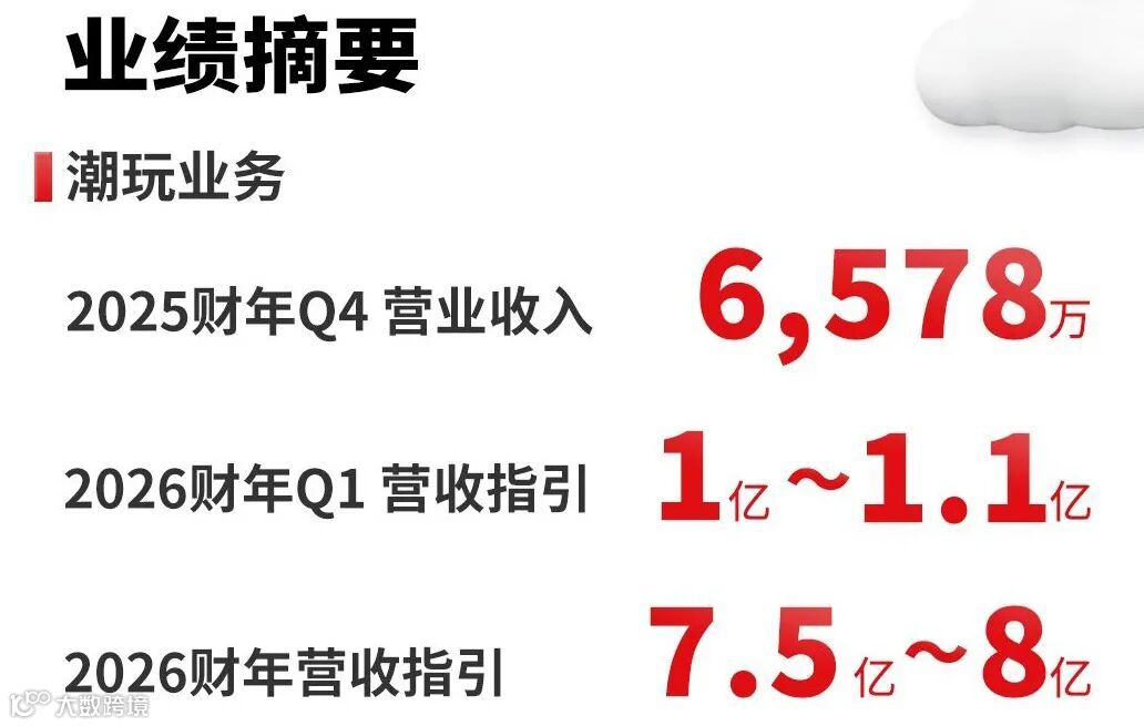 公司预计2026财年第一季度潮玩业务收入达1亿至1.1亿元,全年收入目标为7.5亿至8亿元。