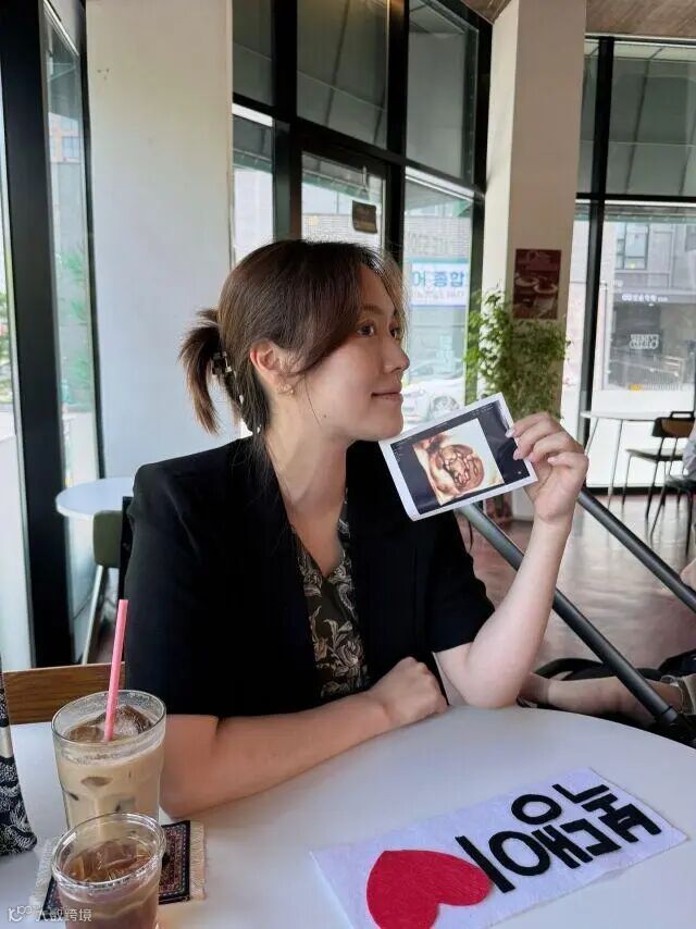 공개된 사진 속 채주화는 검정 재킷에 블라우스를 매치하고 단아한 미소를 지으며 우아한 분위기를 자아냈다. 시원하게 올린 헤어스타일과 깨끗한 피부, 뚜렷한 이목구비가 돋보인다. 특히 그녀가 손에 들고 있는 초음파 사진과 테이블 위의 '복댕이'라는 이름의 부직포 플래카드가 눈길을 끈다.