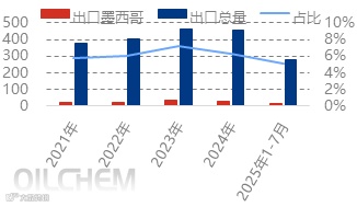 自2024年9月30日起,墨西哥对原产于中国的13-22英寸乘用车及轻型载重汽车新子午线轮胎作出反倾销终裁,征收5.18%-32.24%的反倾销税。受此影响,2024年9月后出口量明显回落。2025年1-7月,中国对墨西哥小客车轮胎出口量仅为4.28万吨,同比下降52.13%,年度占比由峰值5%降至2.21%。若新关税政策明确涵盖此类产品,出口形势将面临进一步承压。