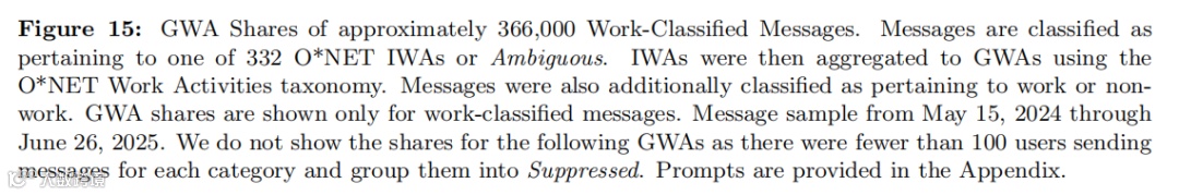 - 所有消息:45.2%集中于三大通用工作活动(GWA):获取信息(19.3%)、解读信息(13.1%)、记录信息(12.8%);