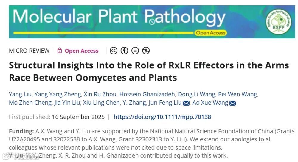 近日,东北农业大学王傲雪团队在植物病理学权威期刊《Molecular Plant Pathology》发表题为《Structural Insights Into the Role of RxLR Effectors in the Arms Race Between Oomycetes and Plants》的综述文章。该研究系统总结了卵菌RxLR效应蛋白在调控寄主细胞自噬、RNA转录、酶活性及免疫反应中的结构机制,为开发绿色、可持续的卵菌病害防控策略和培育抗病作物提供理论依据。